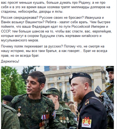Россия сверхдержава? Русские своих не бросают? Иванушка и Ванёк возьмут Вашингтон? Ребята - хватит себе врать. Чем быстрее поймете, что ваша Федерация идет по пути Российской Империи и СССР, тем больше шансов на то, чтобы вас спасти, вас, европейцев, которые могут в скором будущем стать жертвами китайского и мусульманского миров.