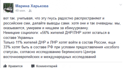 С этой точки зрения, - технологически, - ход блестящий. Может просто распечатать оригинал, положить его на стол тому, кто в переводах с немецкого не нуждается, и он сделает верные выводы: ведь в свое время Новороссию отдали на съедение потому, что "социология" была ниже 75%.