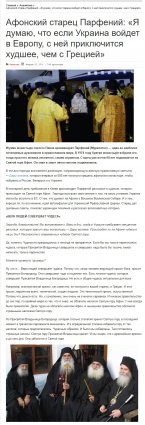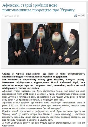 Самое пикантное, что на всех этих десятках вбросов одно и то же фото,выдаваемое за тех "афонских старцев"-астрологов, спёртое с российского сайта, где в 2014-м году, накануне переворота, было размещено интервью афонского старца Парфения «Я думаю, что если Украина войдет в Европу, с ней приключится худшее, чем с Грецией»: