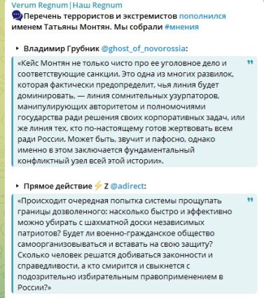 Постараюсь кратко, но видимо так не получится. И пишу лишь потому, что спрашивают, спрашивают и те кто помогает, и вообще кто интересуется, читает про Донбасс и Новороссию. Что я могу сказать о человеке, которого лично не знаю и не пересекался, кроме того, что о ней говорят её дела и люди, с которыми я либо лично знаком и был там с ними и в ДНР и в ЛНР(в те далёкие времена, когда нынешние срочносборщики, ЛОМы, ещё не считали Донбасс русским, т.е. до СВОйны, когда многие из них боялись "зашкварится" рядом с Новороссией), либо к которым я обращался удалённо и они решали важные вопросы там на фронте, поэтому не доверять мнению этих людей, работавших или работающих с Татьяной Николаевной у меня нет причин. А говорю я о мнении Мурза, Родригеса, Грубника и Лысенко.