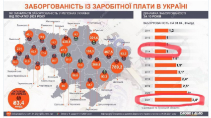 Если кто не в курсе или подзабыл, одним из лютейших преступлений "кровавого режима Януковича-Азарова" были задолженности по зарплате (ярд грвн, не шутка!), в немалой степени обеспечившие хитрому жулью массовку "евромайдана", а бандеровским убийцам богатый выбор целей для формирования реестра сакральных жертв. И вот ...