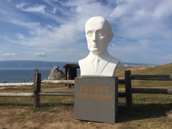 В посёлке Хужир на байкальском острове Ольхон (Иркутская область) установлен бюст Владимира Путина с надписью на постаменте "гарант конституции". Авторы идеи заявили, что намерены жаловаться голове руководителя государства на проблемы региона.