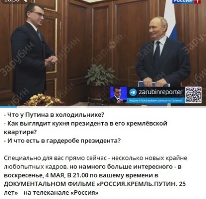 Сегодня вечером отдыхаем, Бабай смотрит сториз в телефоне. Там короткая история из жизни Верховного Главнокомандующего, в которой Президен рассказывает журналисту, где он живёт, показывает комнату, рояль, библиотеку.